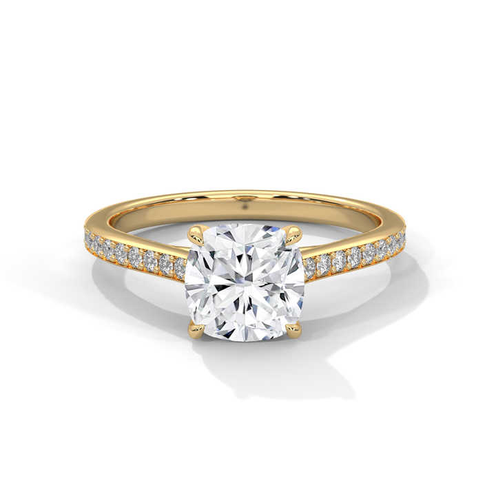 Bagues de fiançailles ou de mariage uniques en or jaune 14 carats avec diamant de laboratoire taille coussin brillant serti sur quatre griffes pour femme
