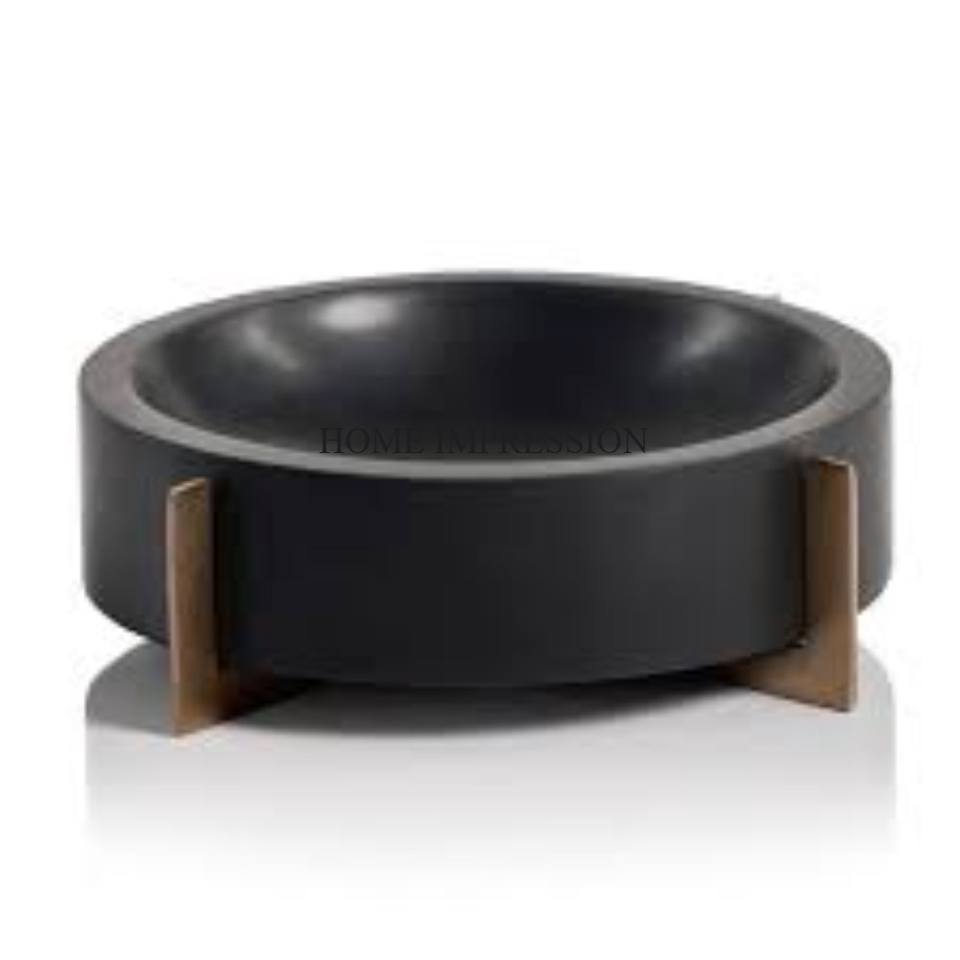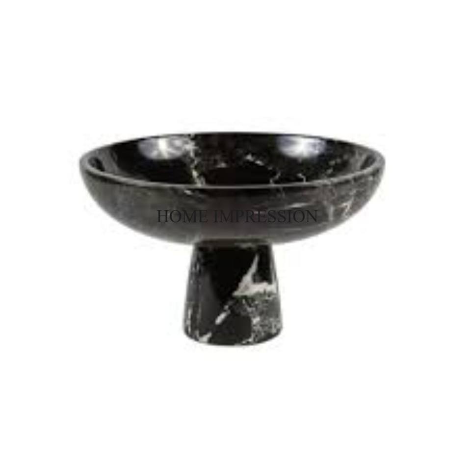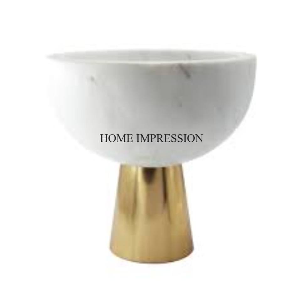 Bol de forme ronde en marbre blanc d'aspect attrayant de concepteur de fantaisie unique avec des bols de service de nourriture à base de métal enduit de poudre de couleur noire