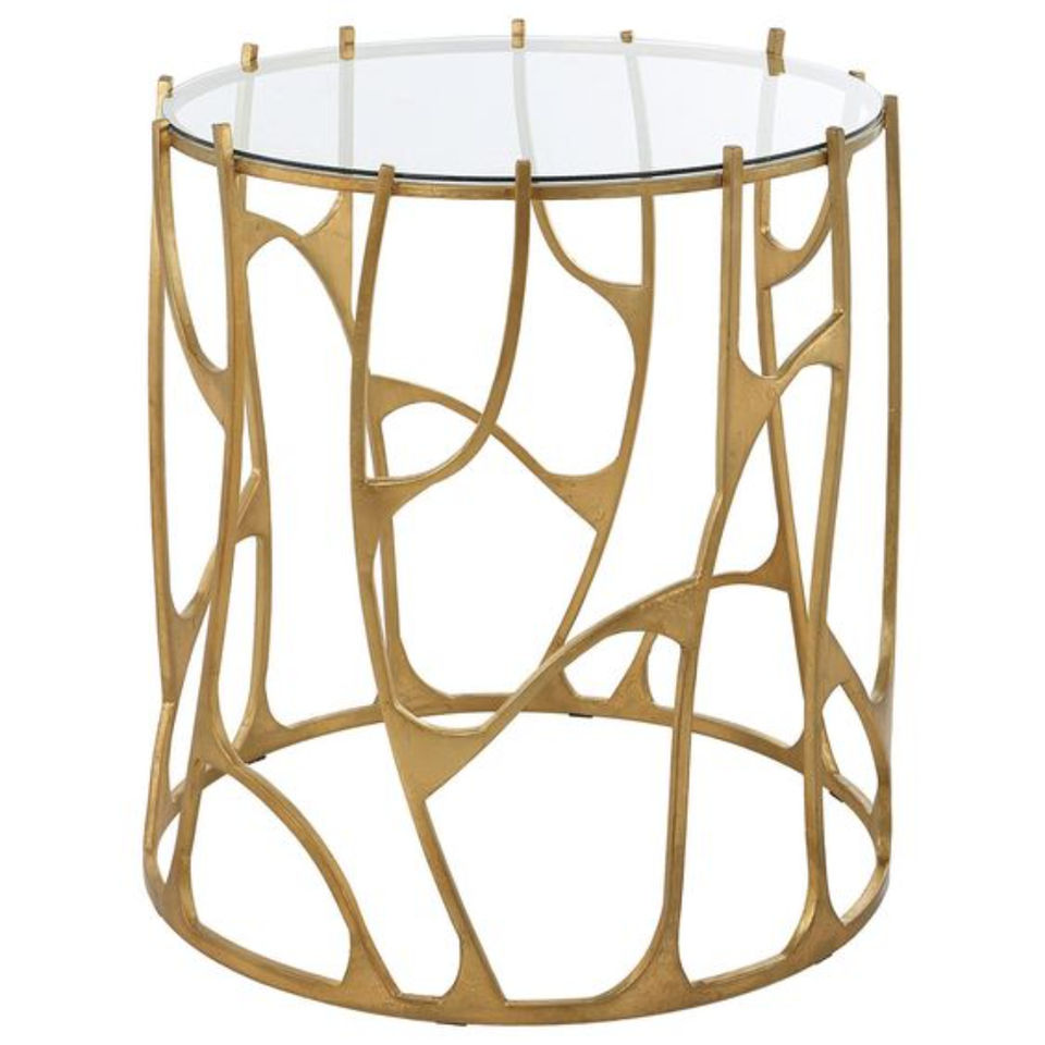 Tables basses et d'appoint de luxe, design unique et raffiné, avec base en aluminium moulé plaqué or de haute qualité et plateau miroir.