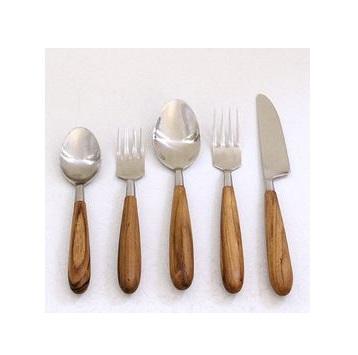 Ensemble de couverts en acier inoxydable fantaisie unique avec manche en bois, style moderne, vaisselle, couteau, fourchette, cuillère, ensemble de couverts poli miroir