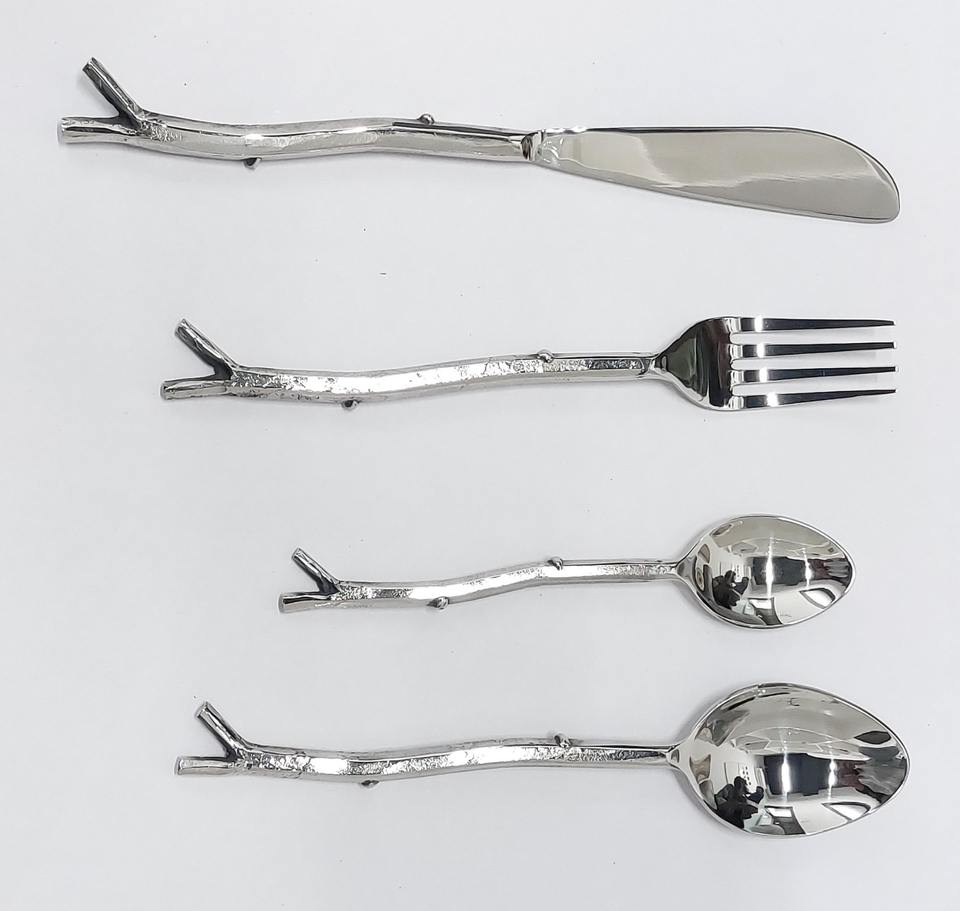 Ensemble de couverts en acier inoxydable fantaisie unique avec manche en métal uni, style moderne, vaisselle polie miroir, ensemble de couverts à vendre