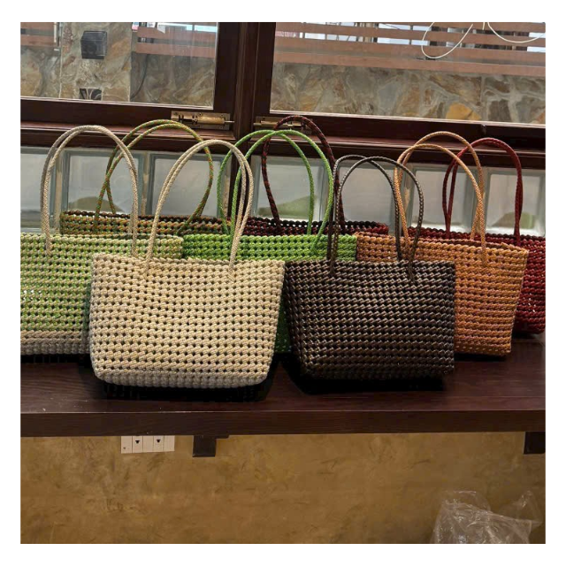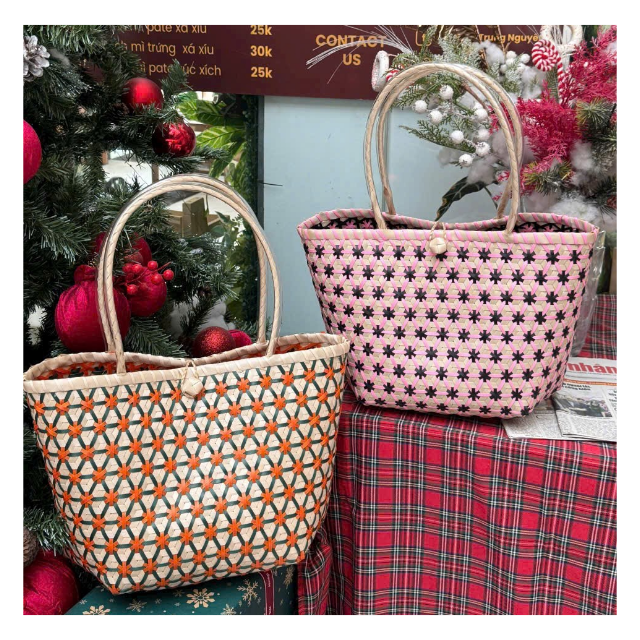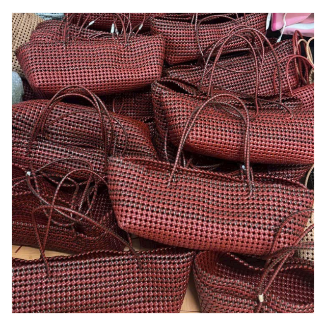 Sac à main carré unique et tendance, fabriqué à la main en PVC tressé, avec deux poignées, design ouvert, couleurs estivales contrastées, conçu pour les femmes