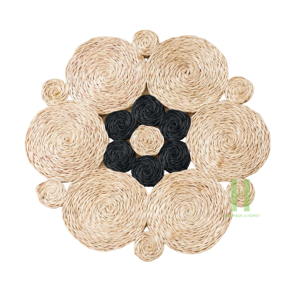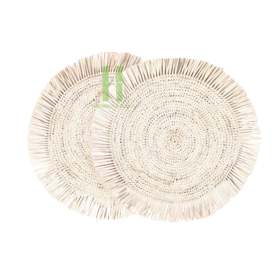 Unique Floral Rattan Bohemian Style Eco-Friendly Placemats Scalloped Edge Custom Design for Table Decorations Handmade Vietnam