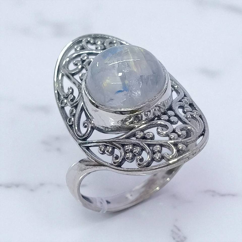 Bague Chunky en Argent Sterling 925 avec Pierre de Lune Arc-en-ciel et Labradorite de Forme Ronde Naturelle, Vente en Gros, Bijoux Bohèmes Personnalisés