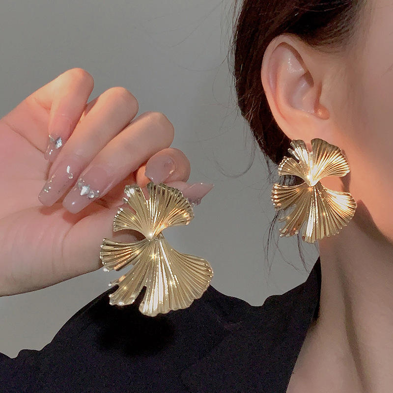 Boucles d'Oreilles Rotatives en Forme de Fleur de Ginkgo, en Plaqué Or 14K, Grandes Boucles d'Oreilles Légères, Bijoux, Cadeau