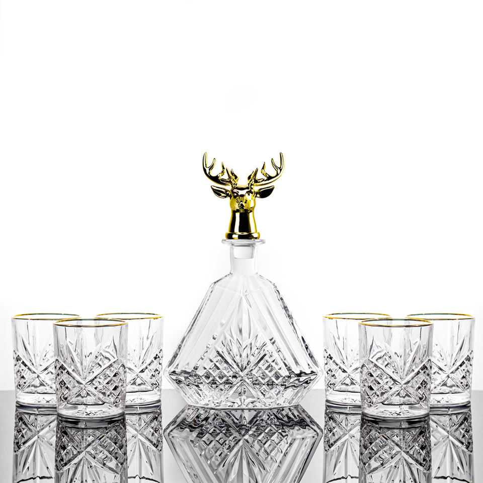 Glass Whiskey Decanter with Stainless Steel Deer Stopper