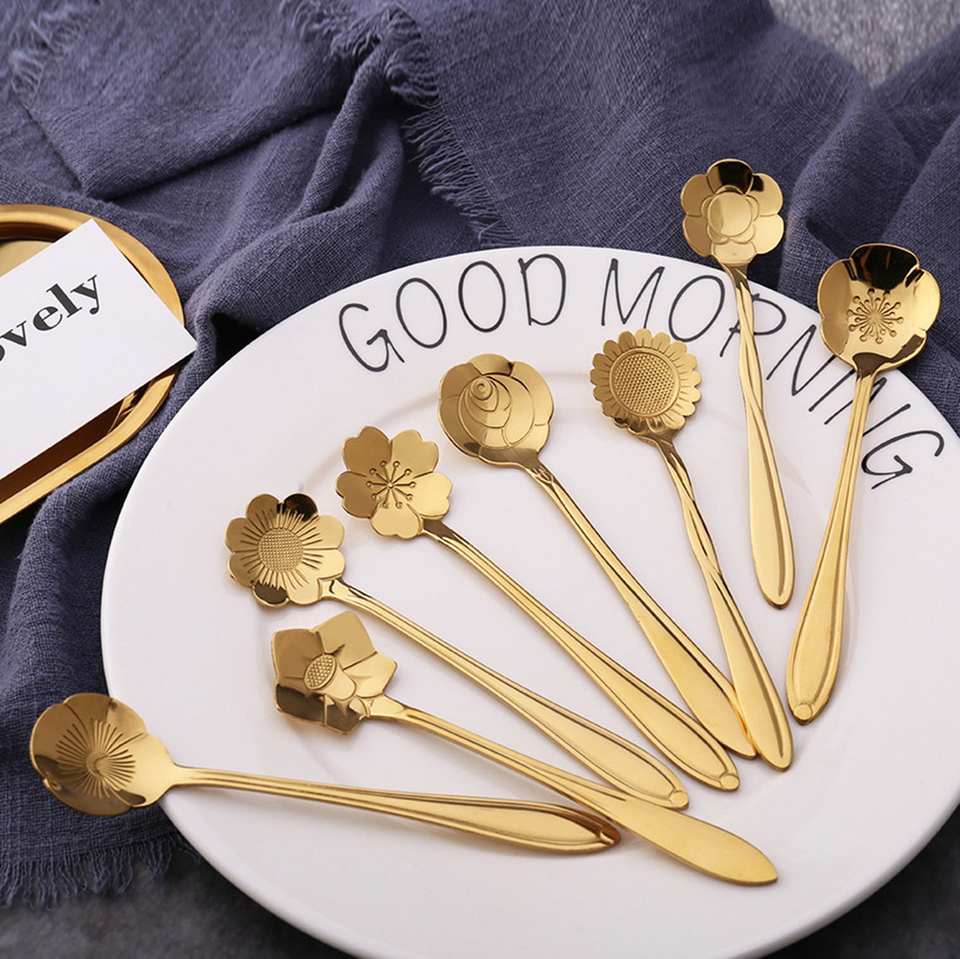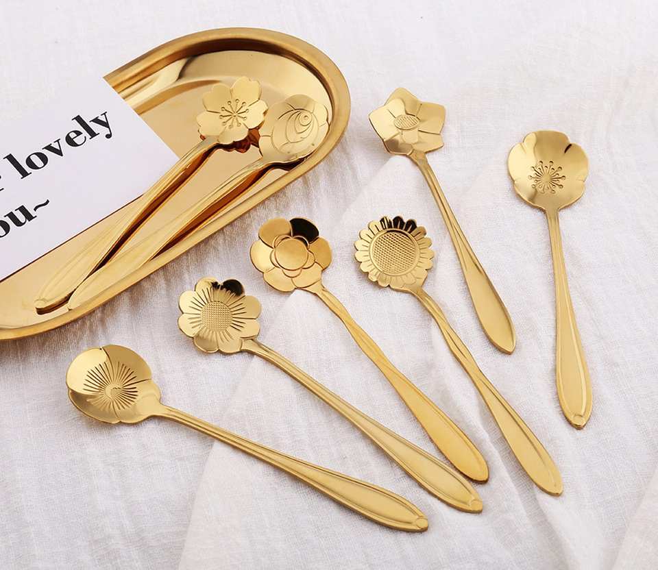 Cuillère de mariage au design unique en or et rose de l'Inde, parfaite pour les ustensiles de cuisine élégants, la maison, le jardin et le restaurant.