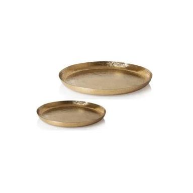 Plateau de service martelé unique avec plaqué or en aluminium de forme ronde plateau de service de nourriture pour la cuisine et le restaurant taille personnalisée