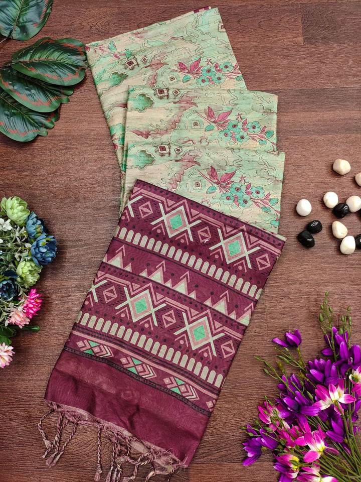 Couleur de l'eau à la main unique belle impression numérique Latkan travail mariée spéciale mariage et fête porter tissu doux fantaisie Saree à vendre