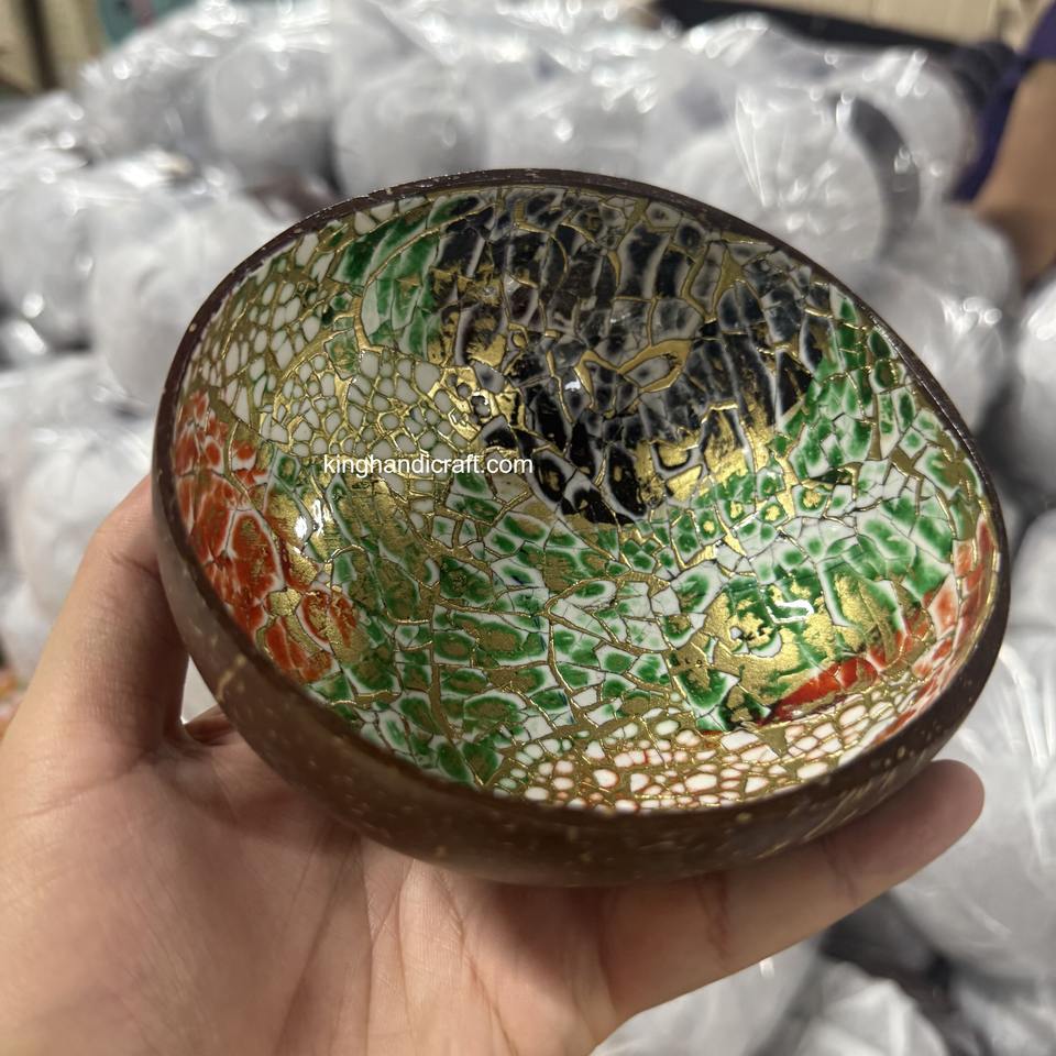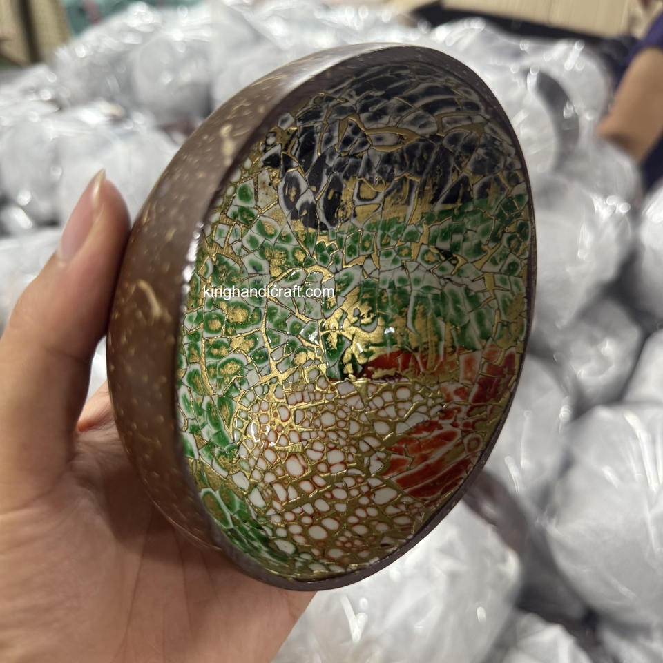 Bol en coquille de noix de coco unique fait à la main avec intérieur laqué | Bol cadeau écologique naturel pour événements, décoration et repas