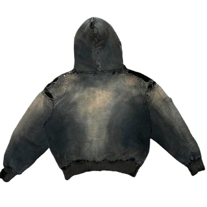 Streetwear déchiré surdimensionné de poids lourd unique pour hommes sweat à capuche personnalisé délavé à l'acide vintage délavé au soleil