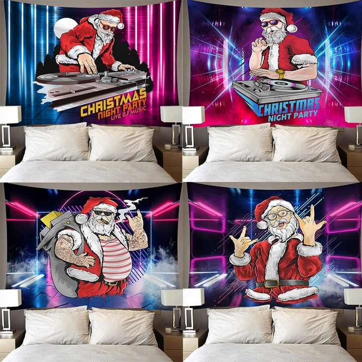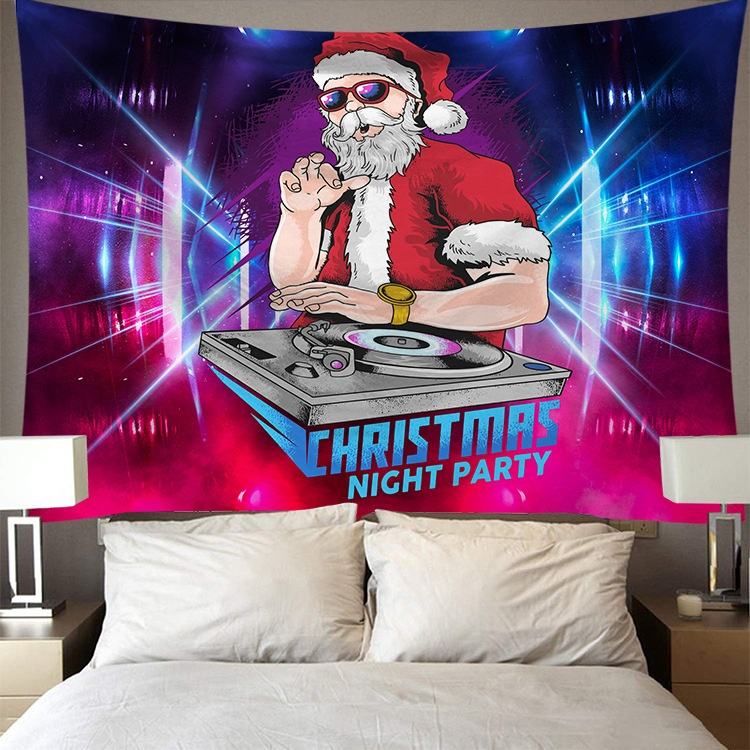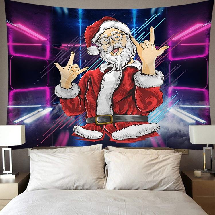 Unique Intéressant Lumineux Coloré Punk Cool Père Noël Série Diffusion En Direct Fond Tissu 3D Impression Numérique Tapisserie