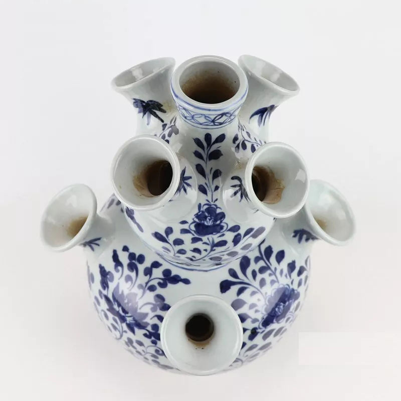 Vases à fleurs en céramique poreux de forme irrégulière unique, bleu et blanc, avec trous, style européen, style palais, vase en céramique poreux