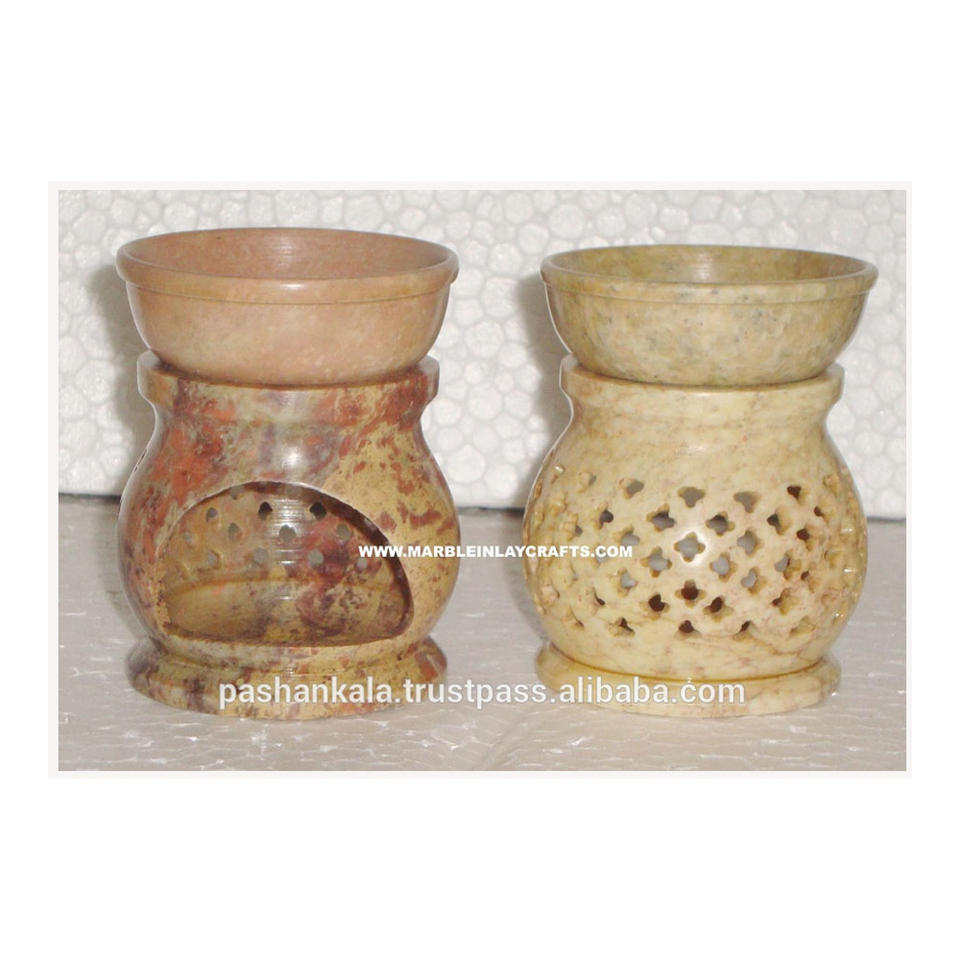 Unique Jali Design Carving On Best Quality Handmade Polished Soapstone Aroma Oil Burner With Smooth And Glossy Surface