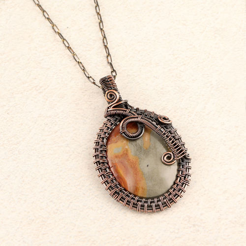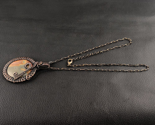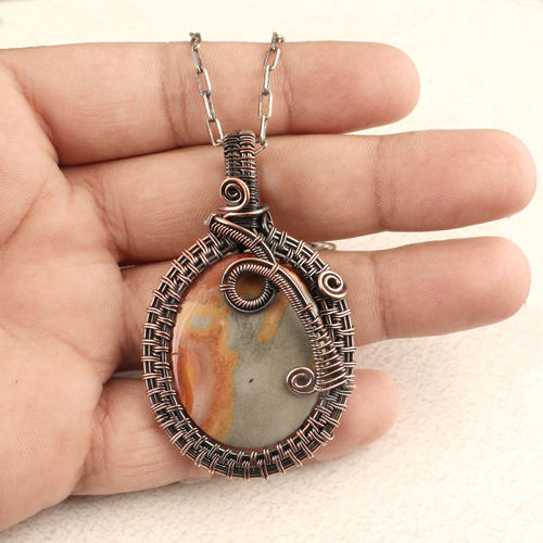 Collection de bijoux Unique collier chaîne trombone enroulé de fil de cuivre, jaspe naturel océan, pendentif de forme ovale, collier bijoux