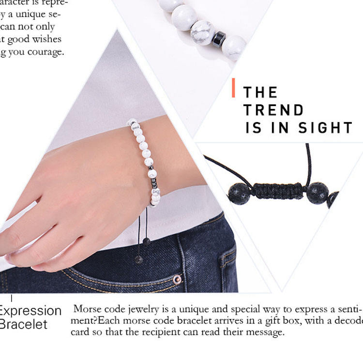 Unique Jewelry Handmade Morse Code Wrap White Howlite Bracelet Inspirational Gift for Best Friends Mom Daughter