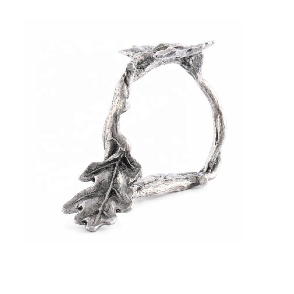 Rond de serviette design feuille unique, tissu ou papier, décor artistique de table de table de bureau, porte-serviettes en métal, occasion et événement de noël
