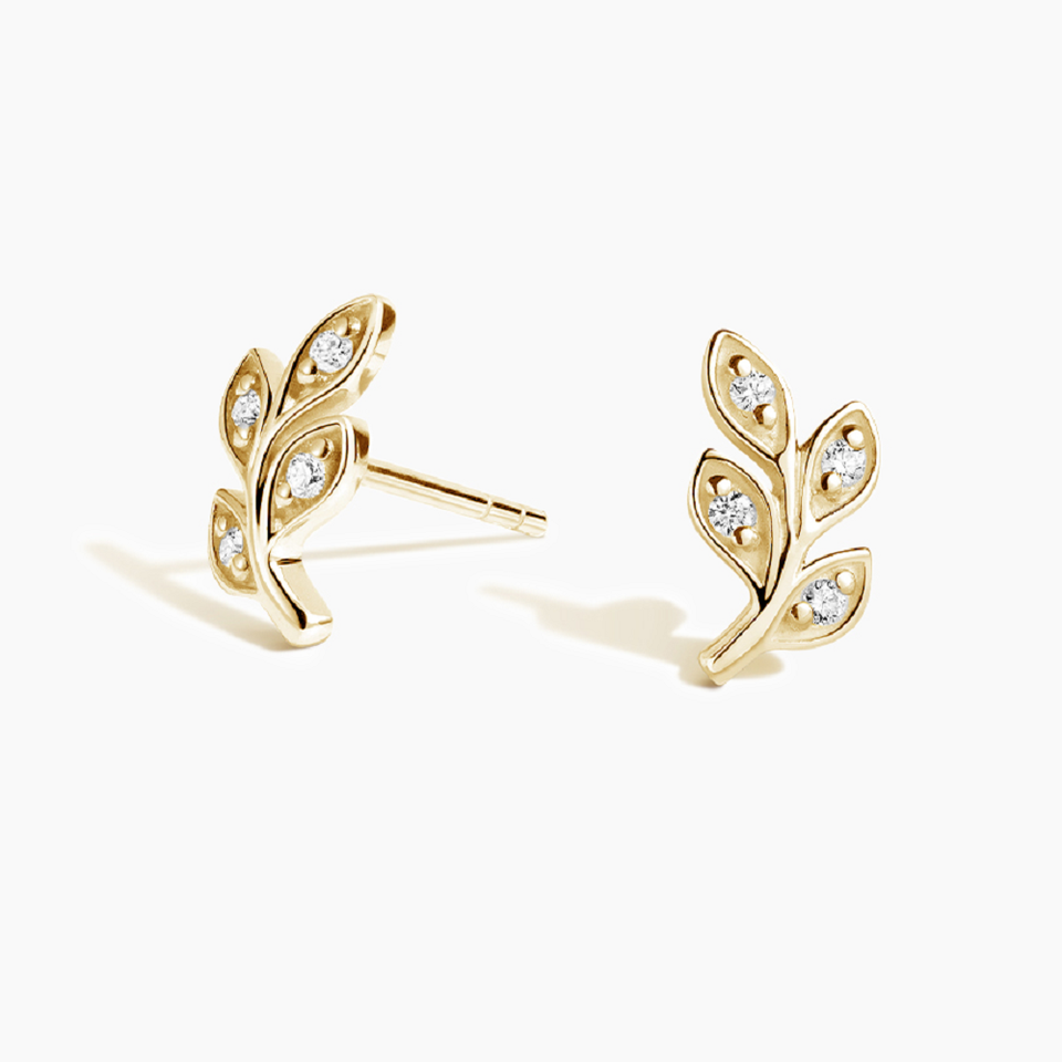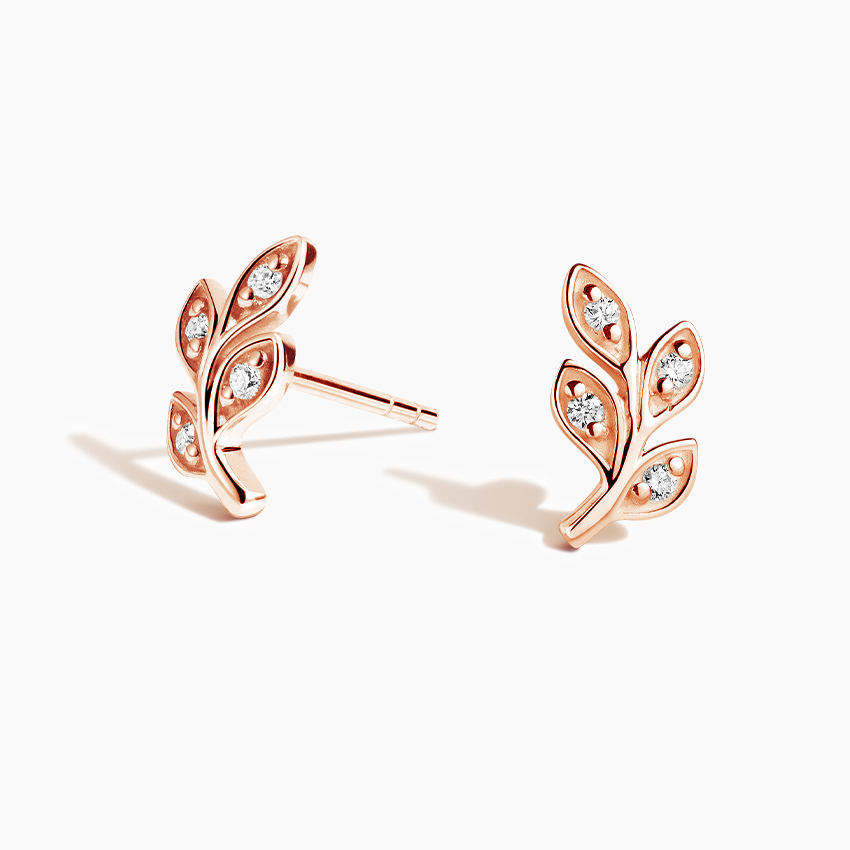 Boucle d'oreille classique en argent sterling avec diamant rond Moissanite, design feuille unique pour femme