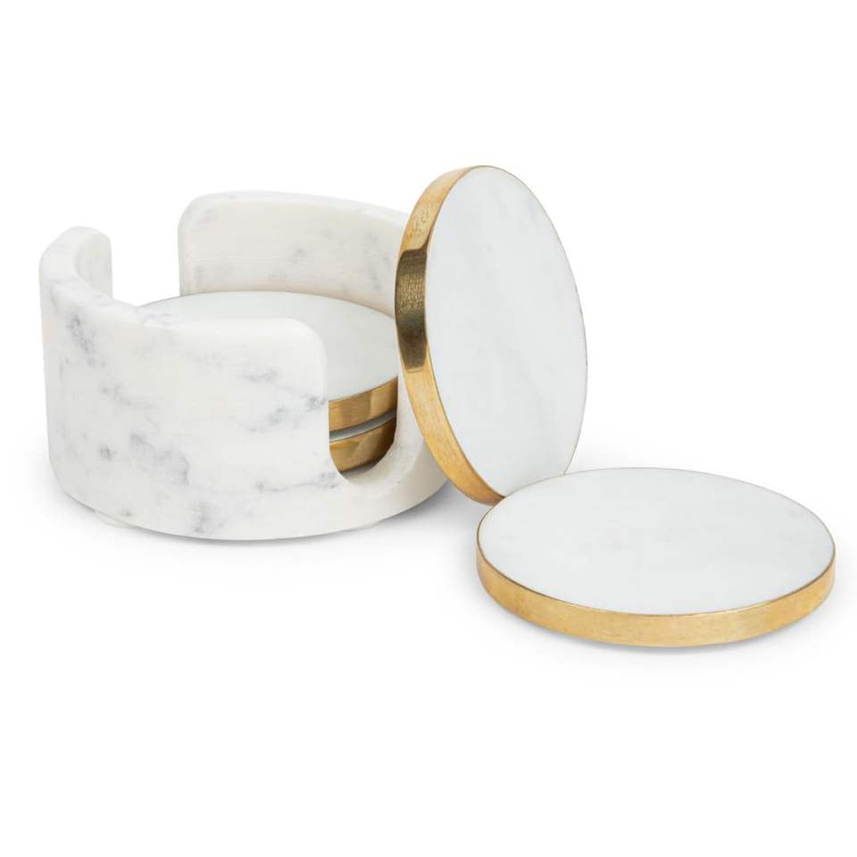 Dessous de verre en forme de coeur marbre blanc classique avec bois naturel pour bureau de cuisine à domicile fabriqué en Inde Mango Coaster