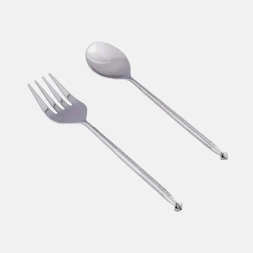 Ensemble de serveurs à salade en métal au design unique avec poignée royale fine, pour hôtels et restaurants, cuillères et fourchettes de service dorées