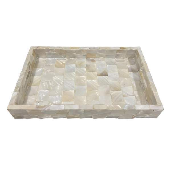 Plateau MOP unique avec des accents de motifs de coquillages faits à la main offrant un attrait visuel distinctif pour les espaces de vie modernes