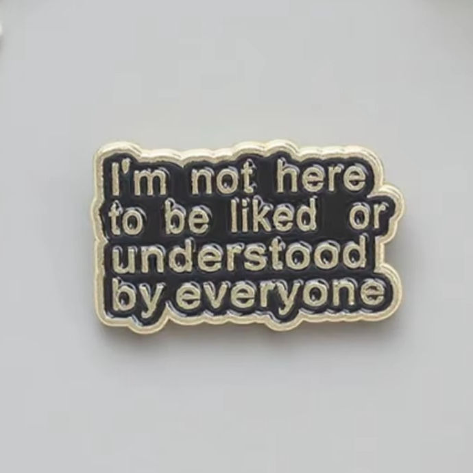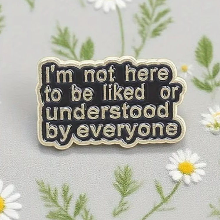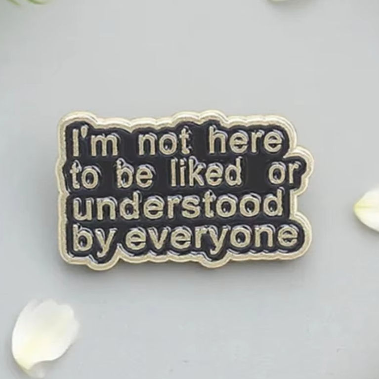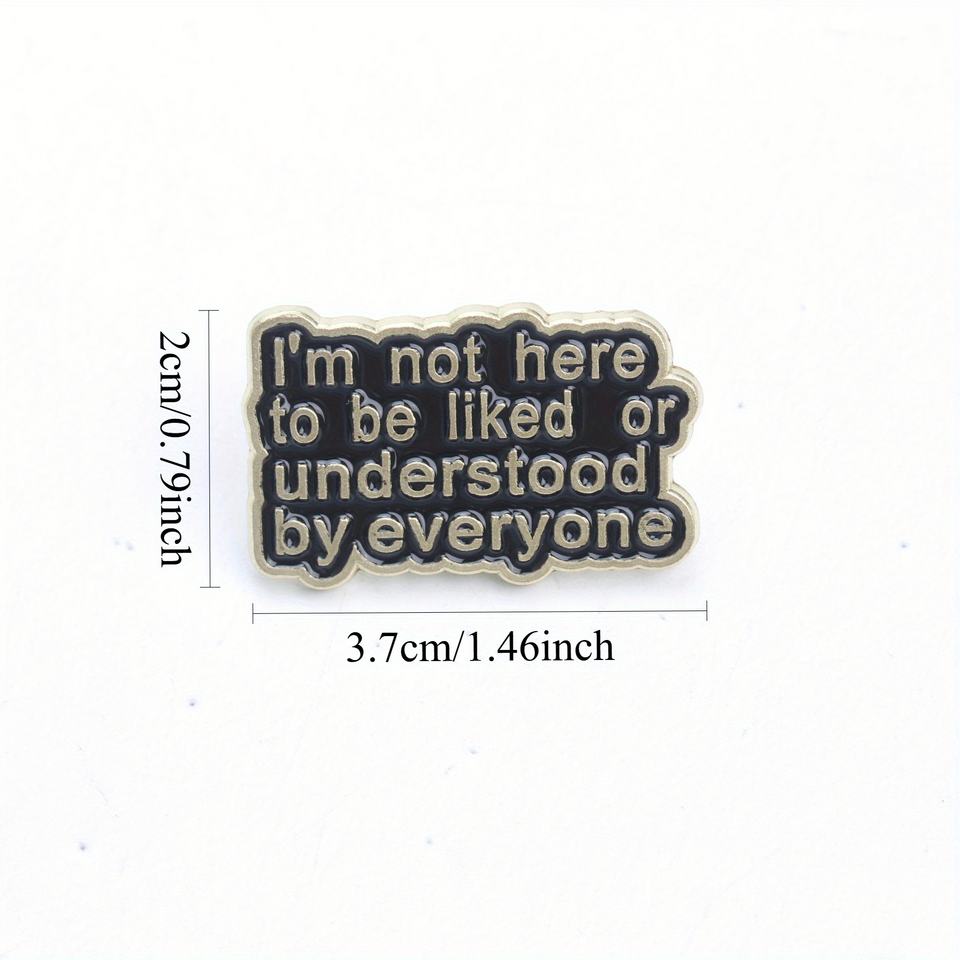Broche en métal unique avec déclaration Life Attitude «Je ne suis pas ici pour être aimé ou compris par tout le monde»