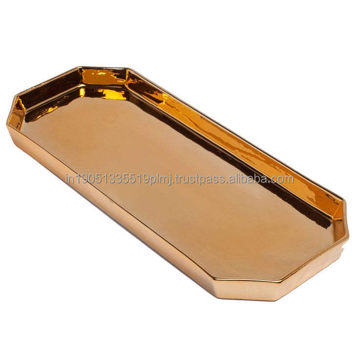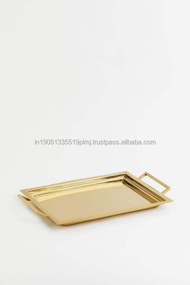 Plateau de service rectangulaire unique en métal couleur or, décoratif, pour les fêtes, les hôtels, les restaurants et les salles à manger