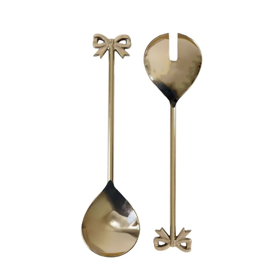 Ensemble unique de cuillères et fourchettes à salade en métal, acier inoxydable, lot de 2, manche torsadé perlé doré, ustensiles de service