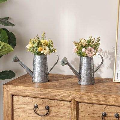 Vase à fleurs unique et moderne en acier inoxydable galvanisé pour une décoration chic, accents de style farmhouse pour salon, intérieur de maison, fait main