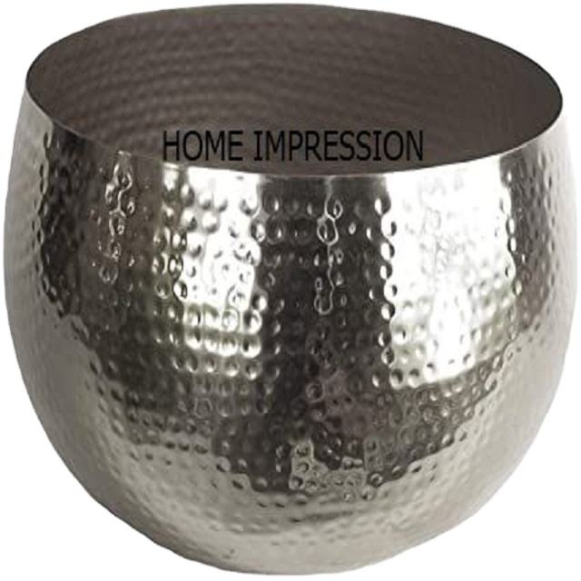 Pots de fleurs et jardinière de jardin en métal antique rond martelé en argent brillant le plus demandé à un prix raisonnable d'Inde