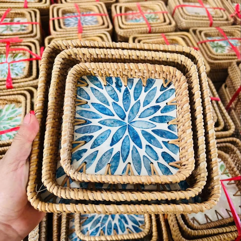 Plateau en rotin incrusté de nacre unique, plateau de service et de présentation multi-usages, produit au Vietnam