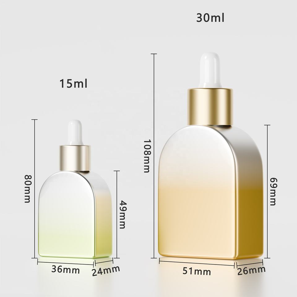 Flacon compte-gouttes en verre au design unique et nouveau, 15 ml, 30 ml, 1 oz, avec bouchon à vis en or rose et argent pour sérum, huile essentielle, usage cosmétique