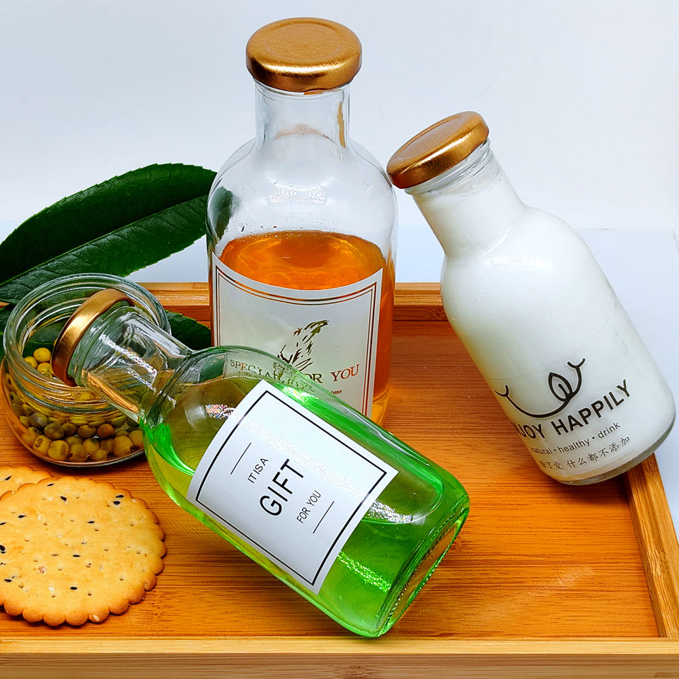 Mot-clé:Bouteille vide de boisson, bouteilles en verre de jus, emballage froid de café