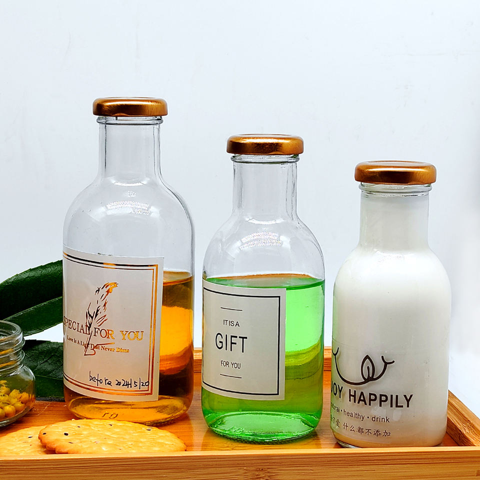 Nouveau design unique 250ml 8oz 500ml 16oz 350ml 12oz bouteilles en verre vides de jus de fruits boissons alcoolisées lait disponibles au meilleur prix