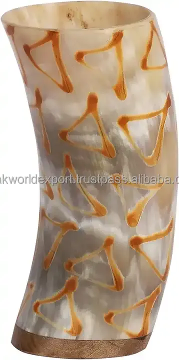 Culbuteur de corne unique en verre à liqueur naturel de buffle et de corne de boeuf Base authentique Viking médiéval de Falak World Export