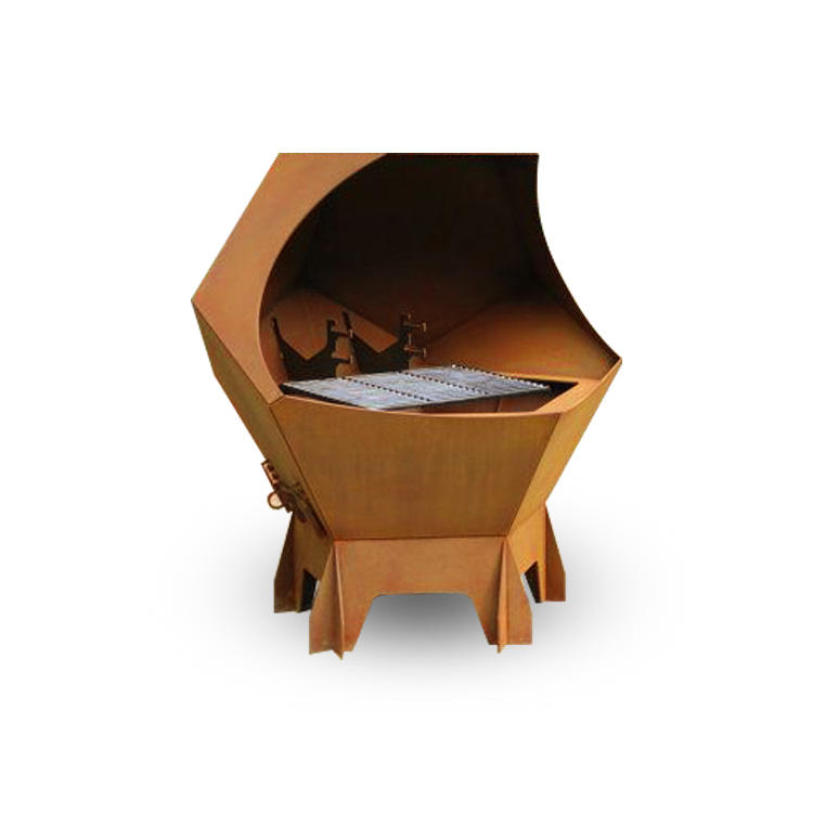Gril d'extérieur pentagonal moderne pour la maison, le jardin et la terrasse Cuisson du bois de chauffage en acier résistant aux intempéries Style Premium