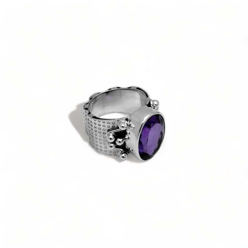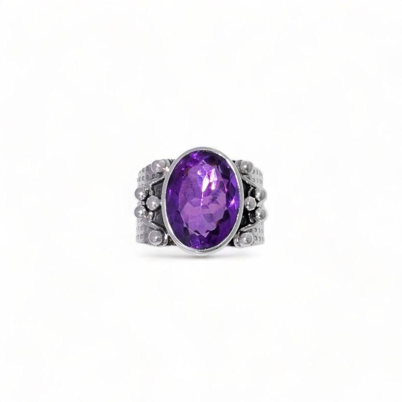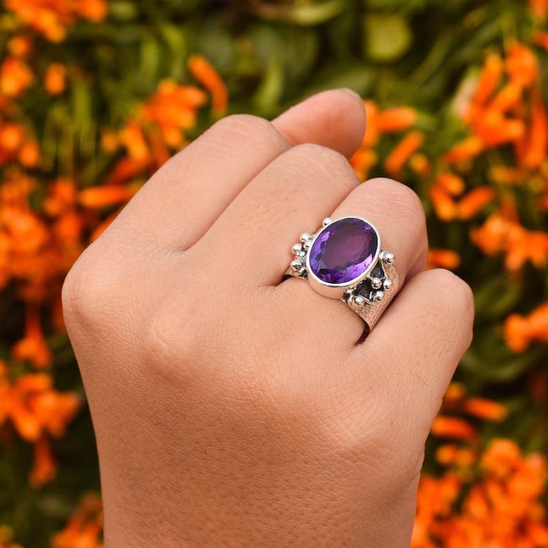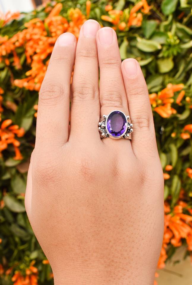 Unique pur 925 argent Sterling naturel améthyste ovale à facettes pierres précieuses fabriqués à la main lunette réglage anneaux Fine fête de mariage