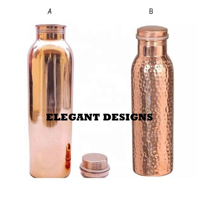 Bouteille d'eau en cuivre indien de qualité unique faite à la main décorative indienne dessus de table classique élégant en gros bouteille d'eau en cuivre