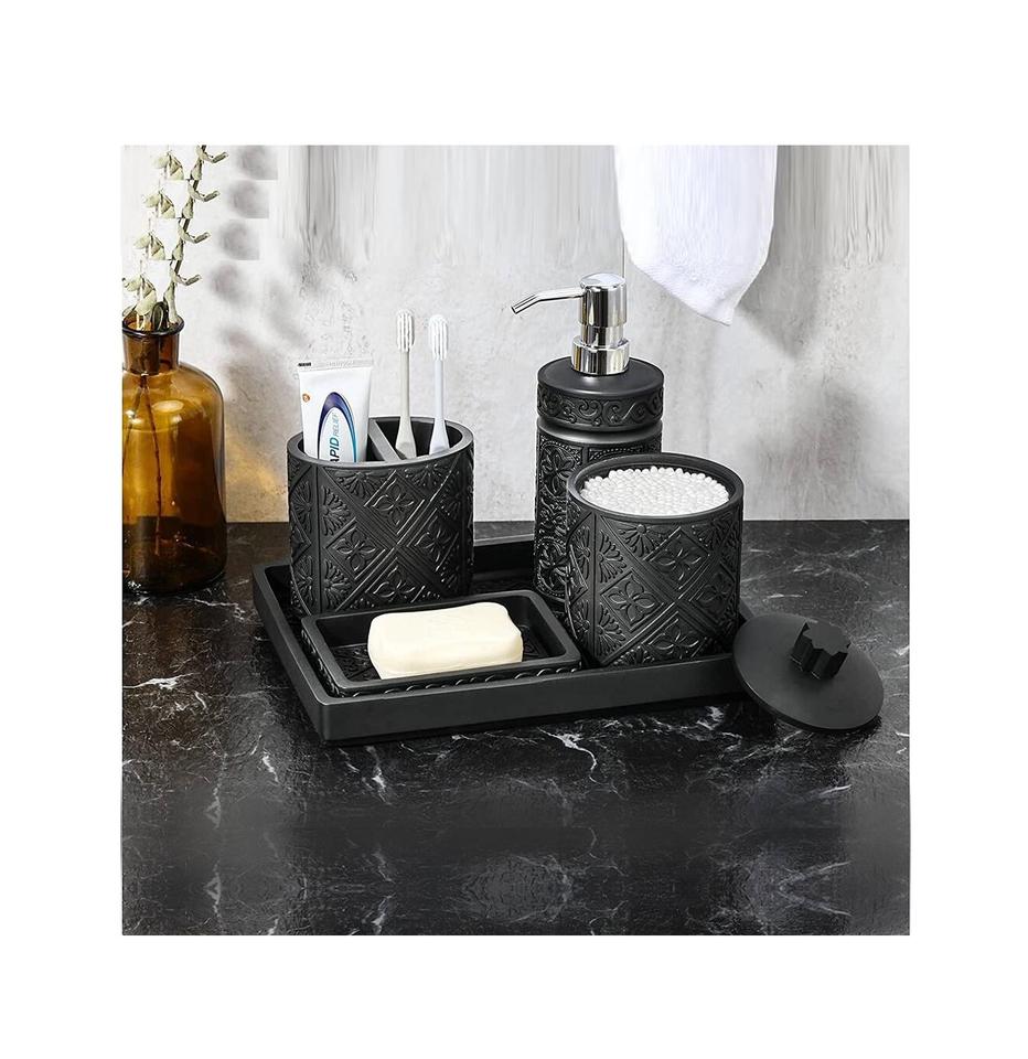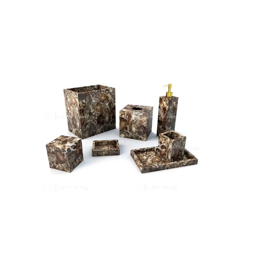 Ensemble de salle de bain 7 en résine unique meilleur look brosse à dents y compris distributeur de savon boîte à savon en résine produit de vente
