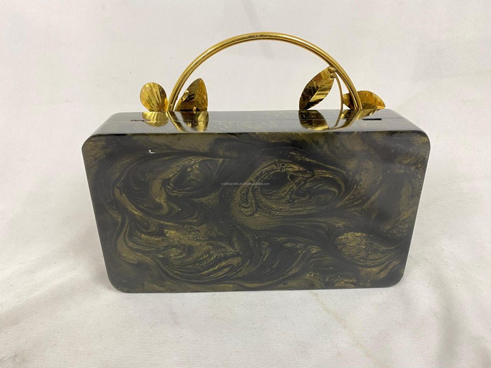 Boîte d'embrayage en résine au design floral fabriqué à la main poignée en métal embrayage en résine de style religieux unique cadeaux artisanaux prix d'usine en gros