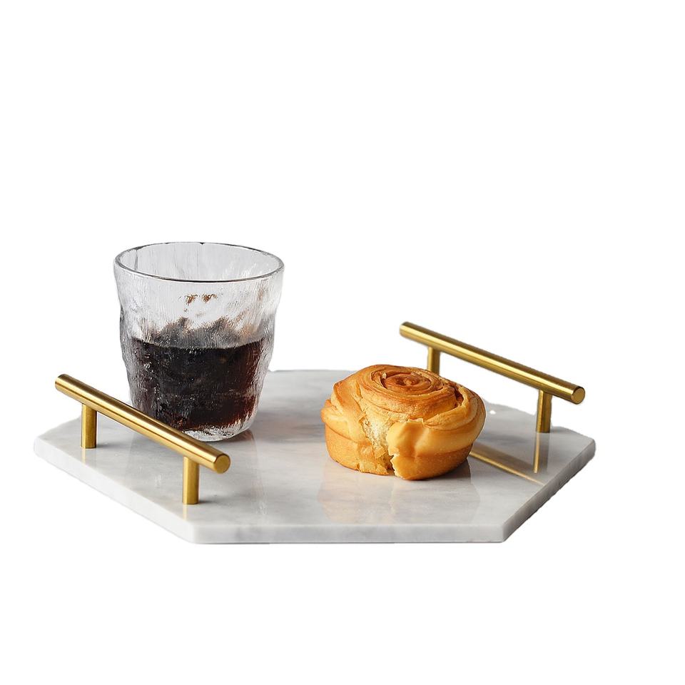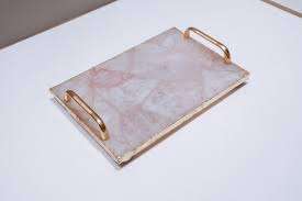 Plateau de service en Quartz Rose Unique, forme libre, bord doré avec poignée en laiton, plateau de luxe en Quartz