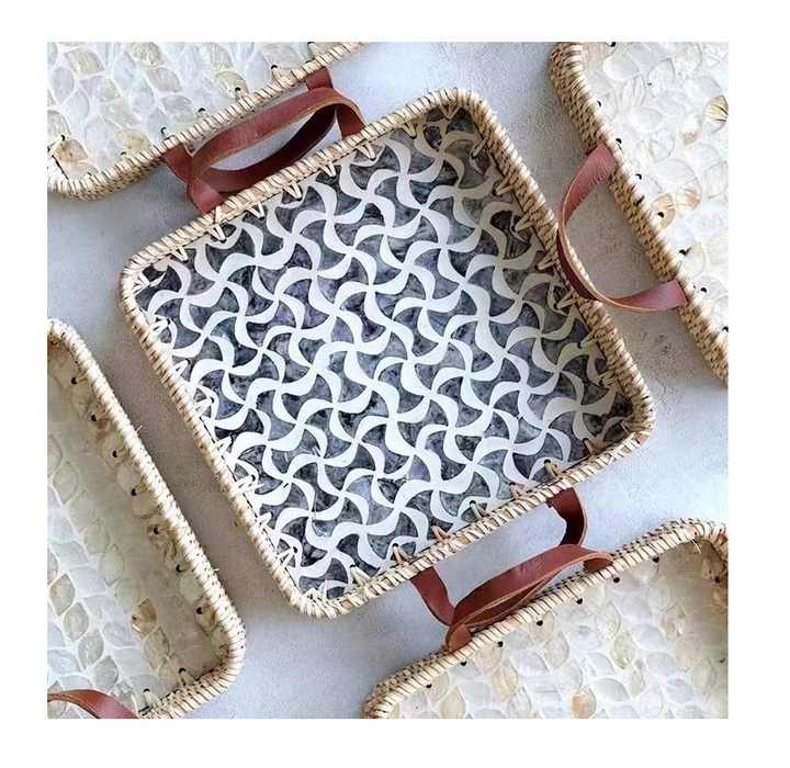 Plateau de service en rotin rond Unique en nacre, décoration de la maison au Vietnam, vente en gros or 99
