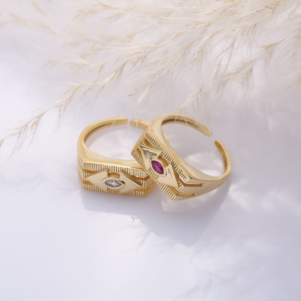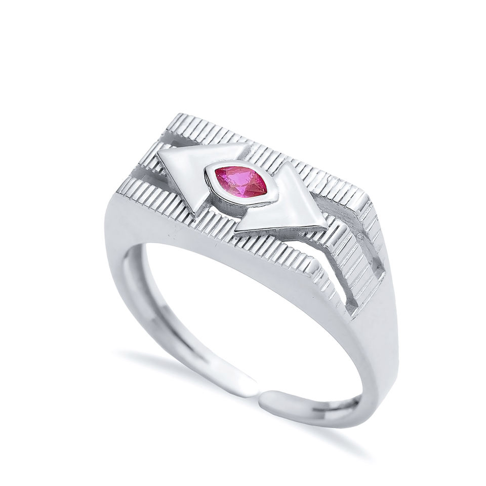 Unique Rubis CZ Forme D'oeil À La Main Femmes Cluster Bague En Argent Turc Fabriqué À La Main En Gros 925 Bijoux En Argent Sterling
