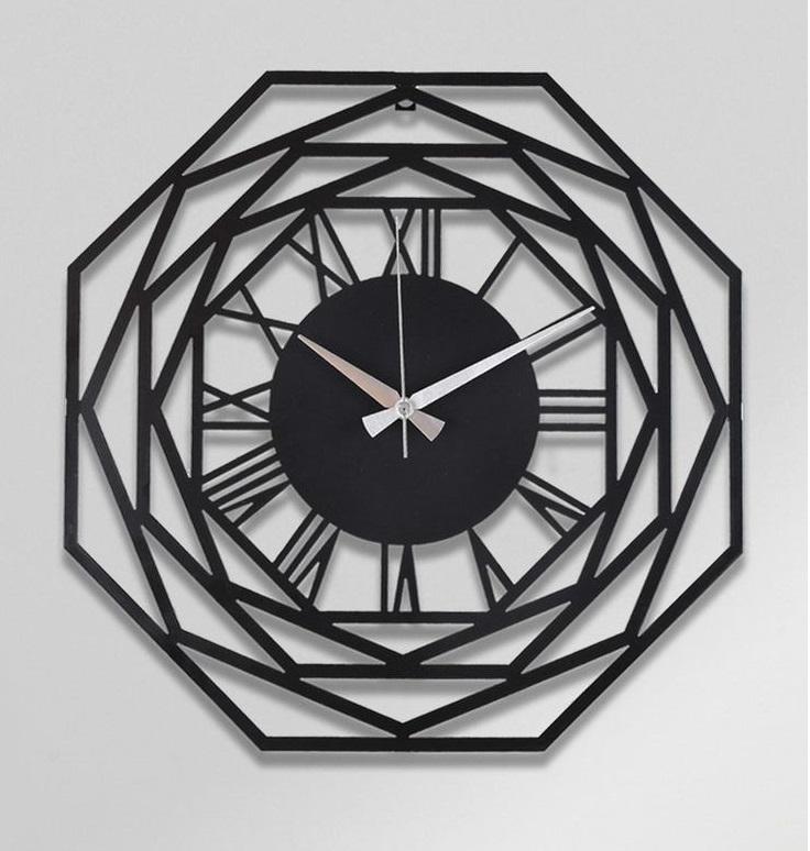 Unique Shape Iron Wall Clock With Black Finished Great for Home and Office Decoration Accessory