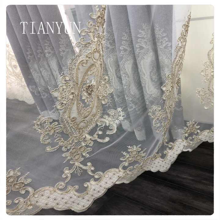 Rideau en dentelle unique, broderie transparente, fenêtre européenne, élégant, luxe, sur mesure, rideaux en dentelle transparents pour salon