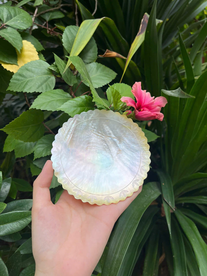Assiette en mosaïque de coquillages unique, nacre, vaisselle décorative