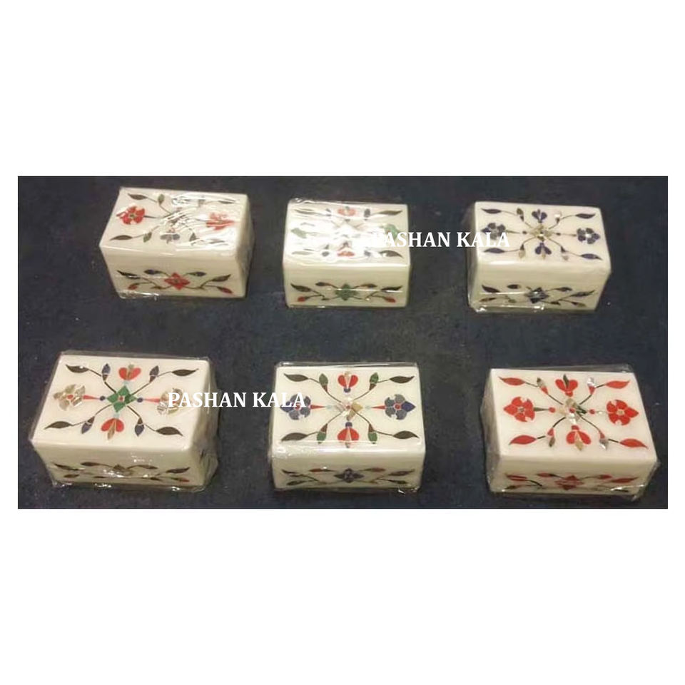 Coffrets cadeaux uniques de bijoux de conception de fleur d'incrustation de marbre blanc de petite forme rectangulaire pour le mariage et le but de cadeau d'affaires