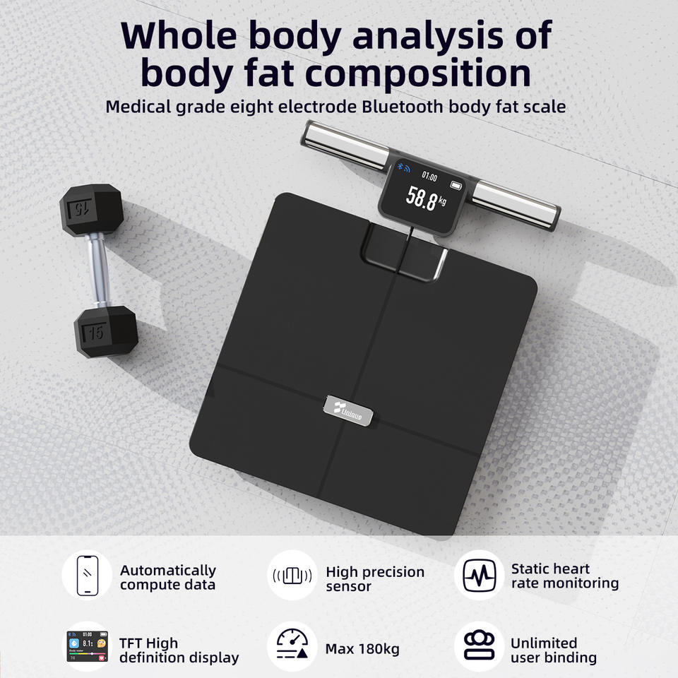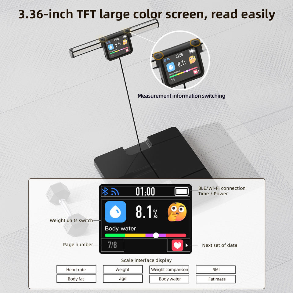 Balance corporelle intelligente unique, 300x330mm, écran LCD, Bluetooth, Wifi, capteur de haute précision, alimentée par batterie