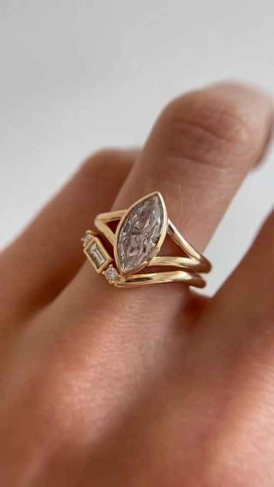 Ensemble de bagues avec diamant taille marquise