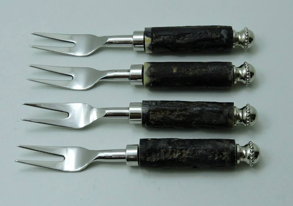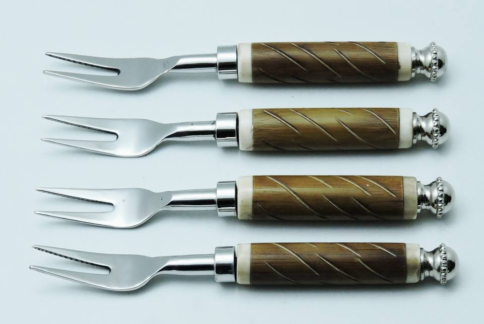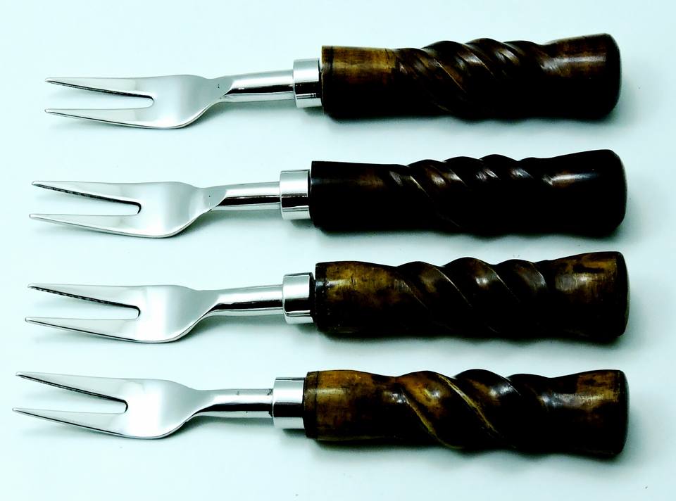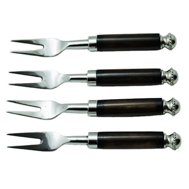 Ensemble de fourchettes à manche en bois en acier inoxydable de couleur noire et argentée de style unique